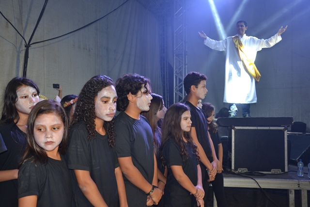 O outro momento foi na parte da noite, no palco montado na Avenida Corinto Matos, onde aconteceram apresentações das igrejas evangélicas do município, coordenadas pelos seus membros. Na oportunidade houve coreografias e louvor através de canções e leituras da Palavra de Deus.
