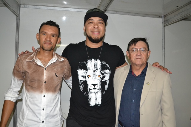 Prefeito e secretário de cultura com o cantor Ton Carfi